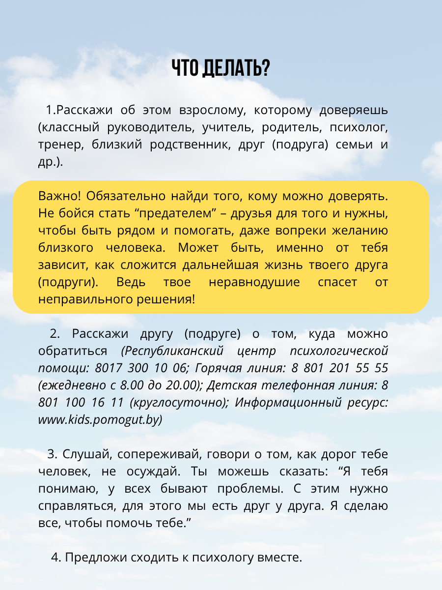 Кроме того, на интернет-ресурсе Talk2ok.by в соответствующих рубриках размещены информационно-просветительские материалы по достаточно широкому кругу психологических проблем, с которыми подростки и их родители могут ознакомиться.