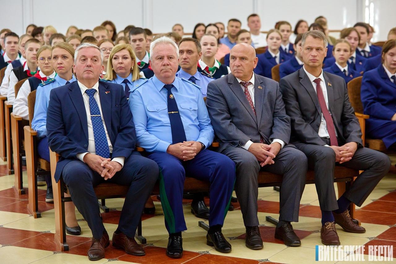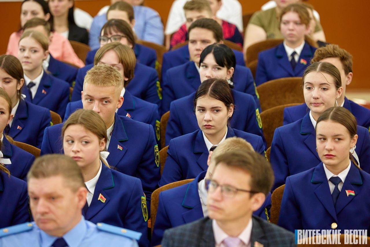 В ходе торжественной церемонии учащиеся правового класса «Юный прокурор» торжественно пообещали свято соблюдать Конституцию Республики Беларусь, сохранять историческую память о героическом прошлом белорусского народа, добиваться высокой эффективности в учебе.