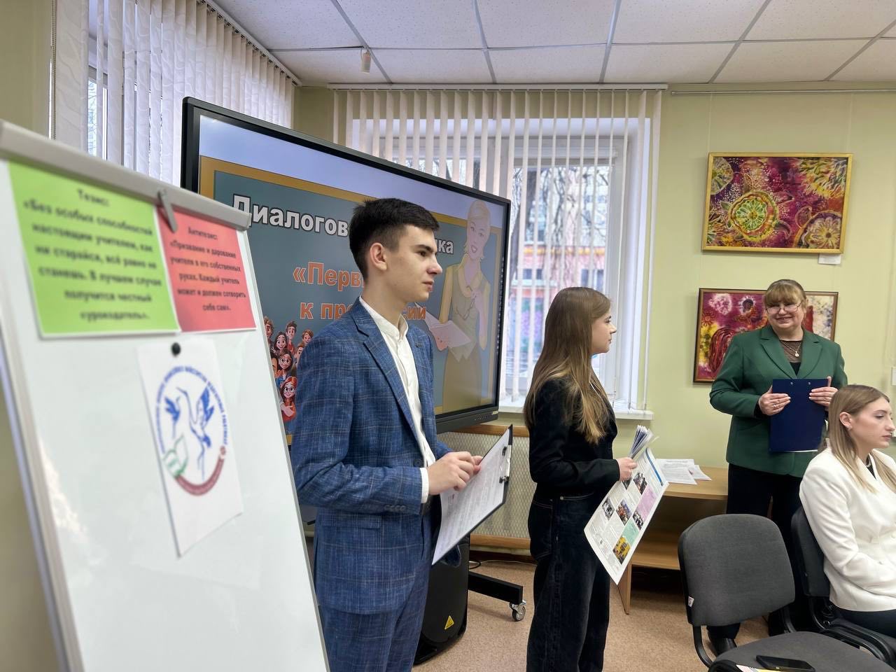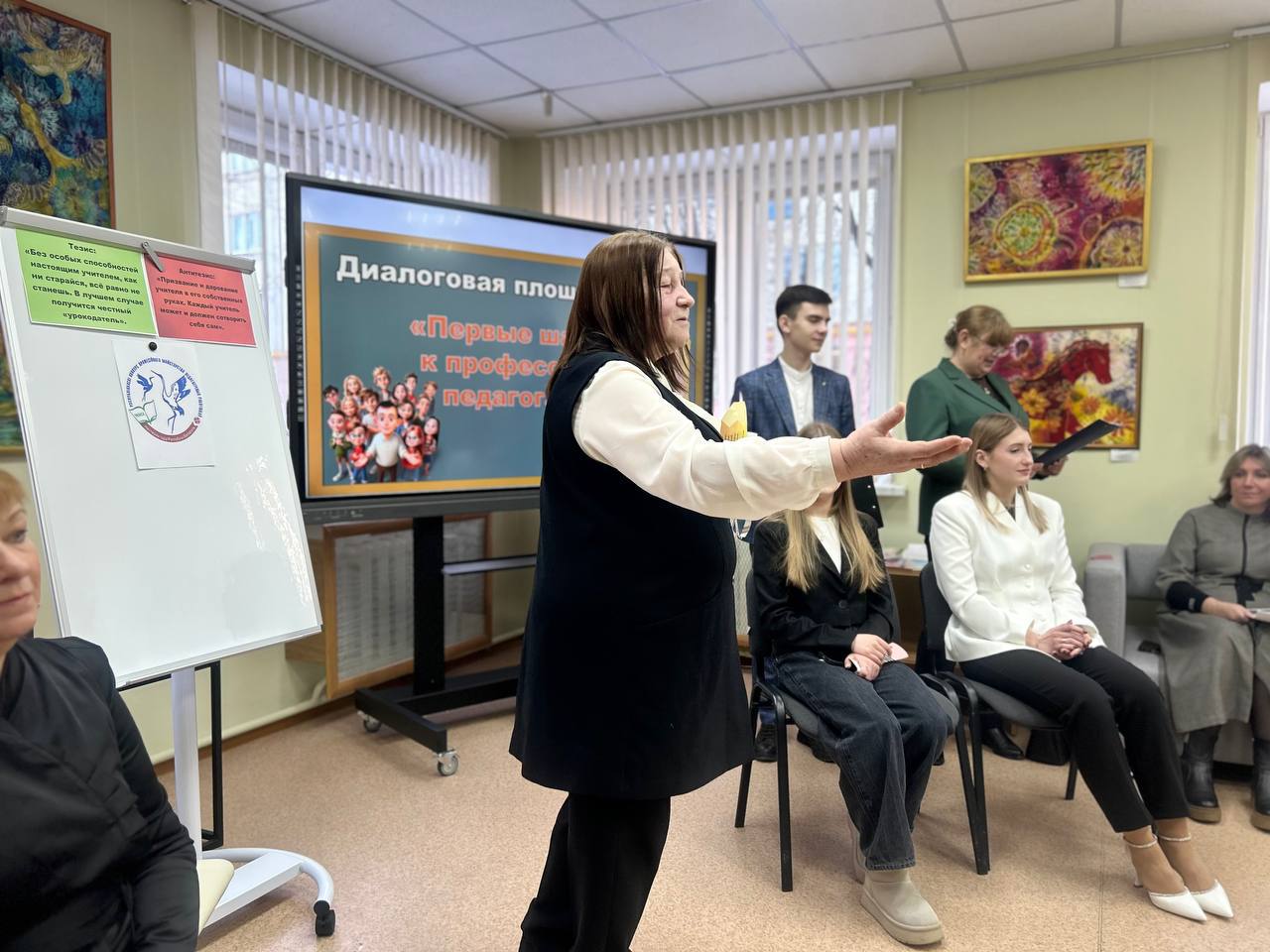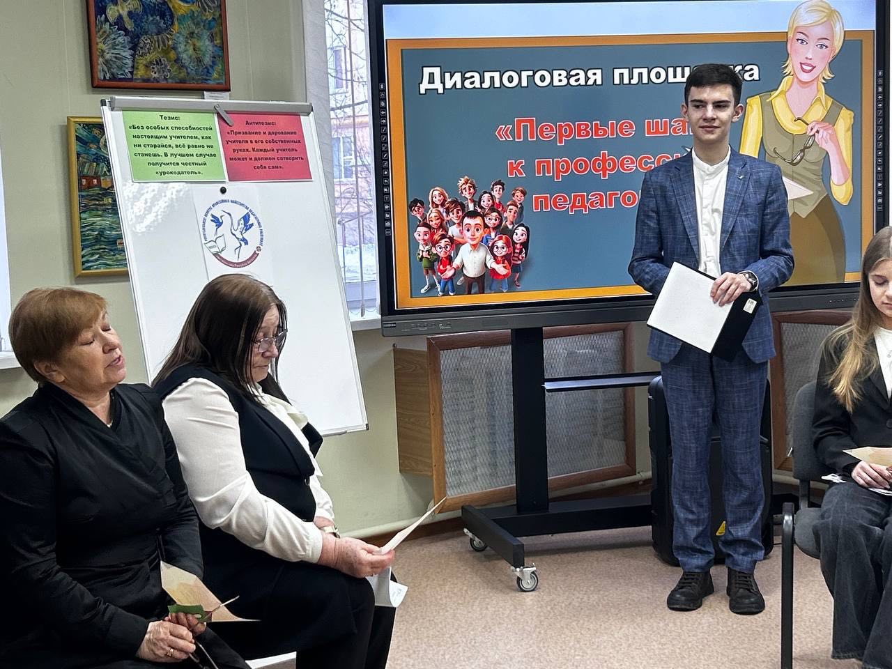 В ходе диалога обсуждалось многообразие педагогической деятельности, были обозначены первые шаги к профессии учителя, а также прозвучало экспертное мнение педагогов-ветеранов.
