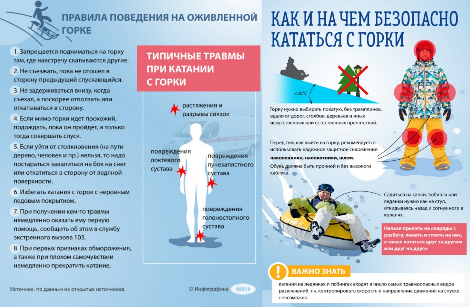 «Прокуратура Витебской области предупреждает: с начала года в области в результате катания со снежных гор на тюбингах, ватрушках, санках и других спортивных снарядах пострадало более 40 детей, в том числе более 10 получили тяжелые травмы, включая переломы позвоночника!